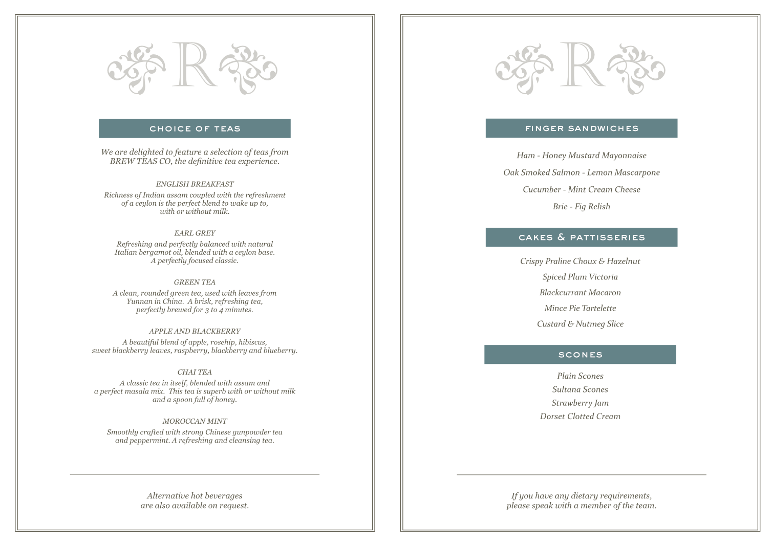 *Booking is essential and a minimum of 24 hours notice is required when booking afternoon tea.
