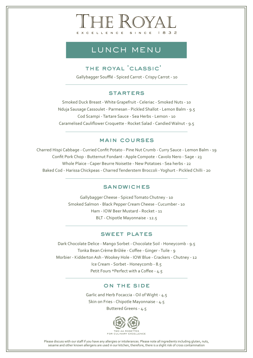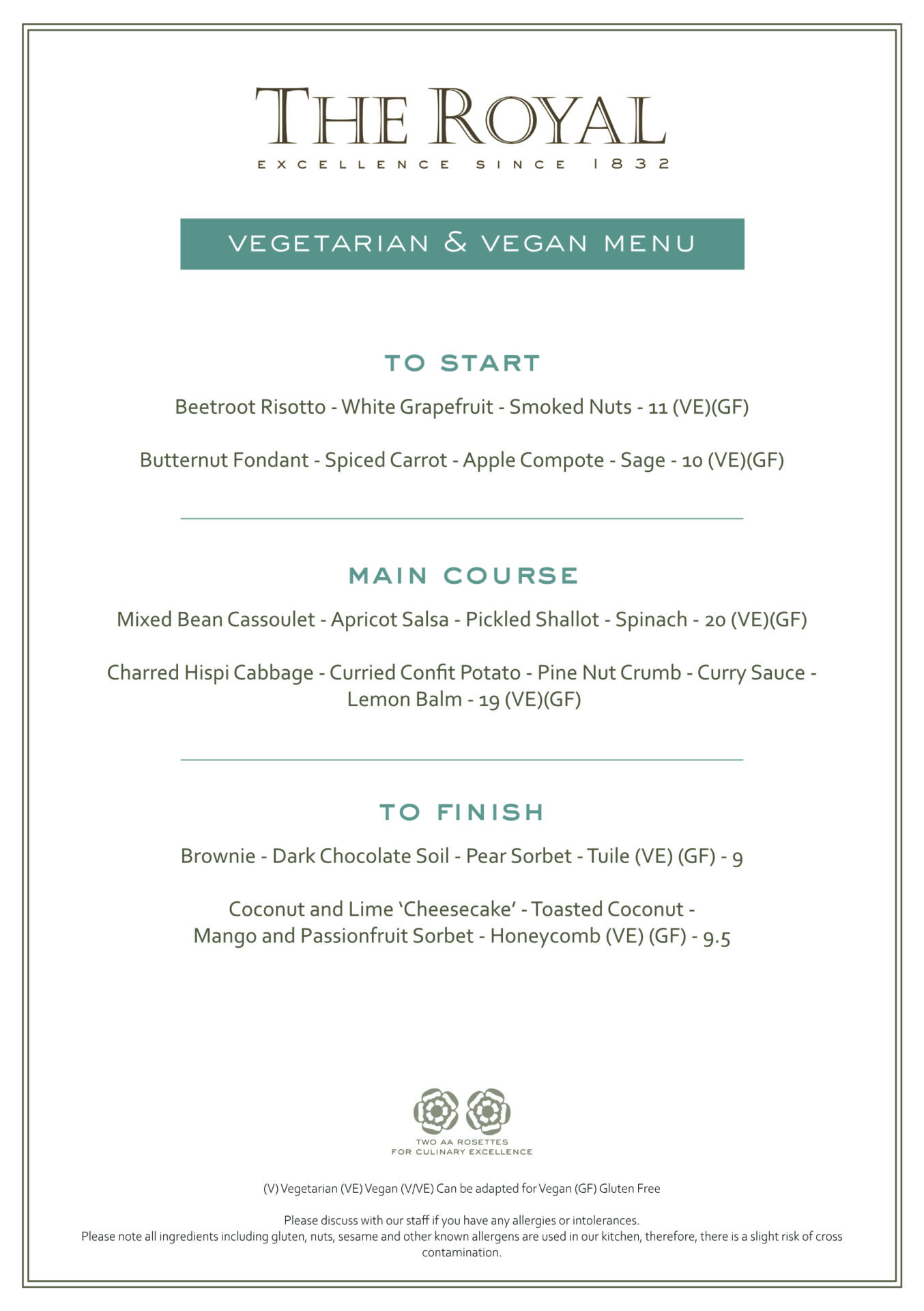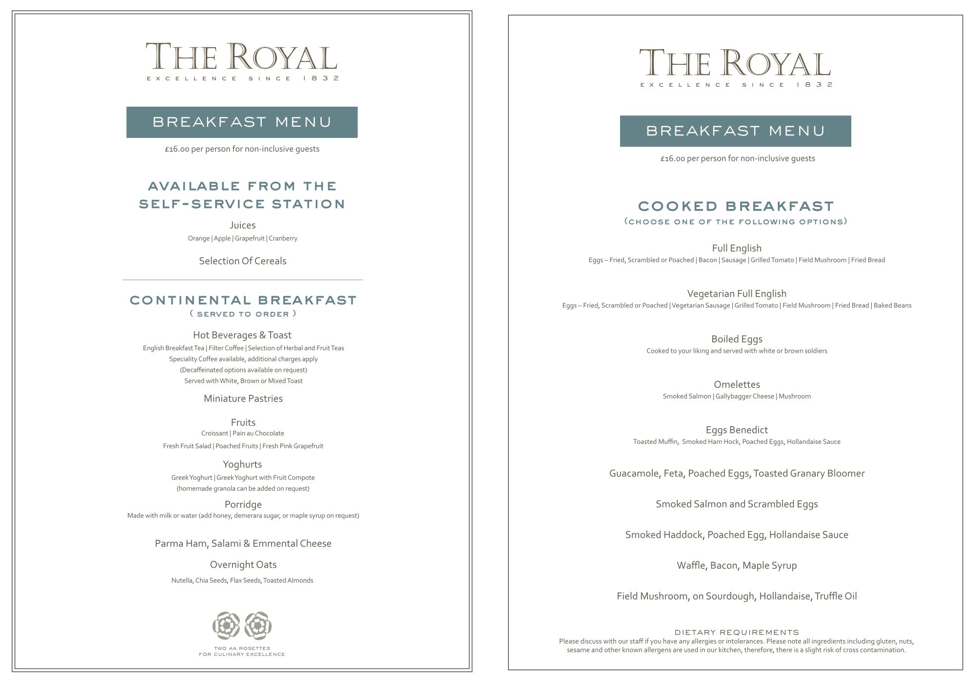 special/dietry menus