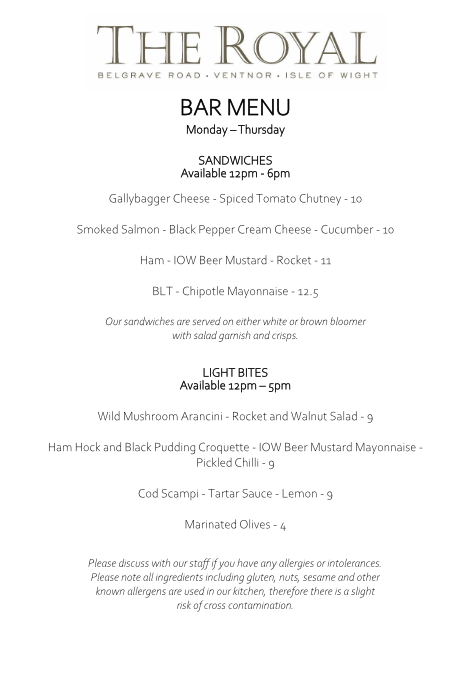 bar menu