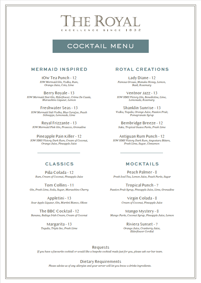 drinks menus